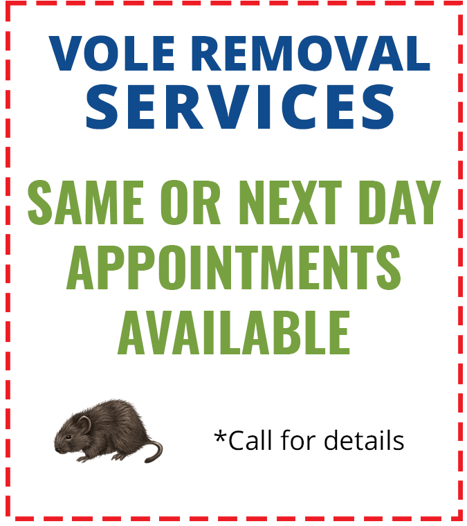 Our specialized vole extermination and removal program really works! It's a service that our team has been specializing in for years. If you suspect you might have voles destroying your yard, call us today (or book a vole removal service online).